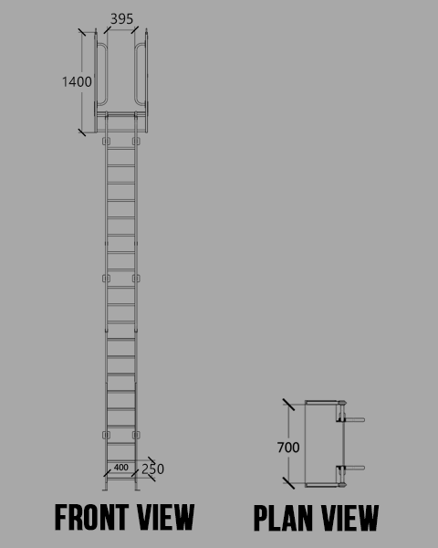 ① The landing platform width is 700mm ② The rung width is 400mm