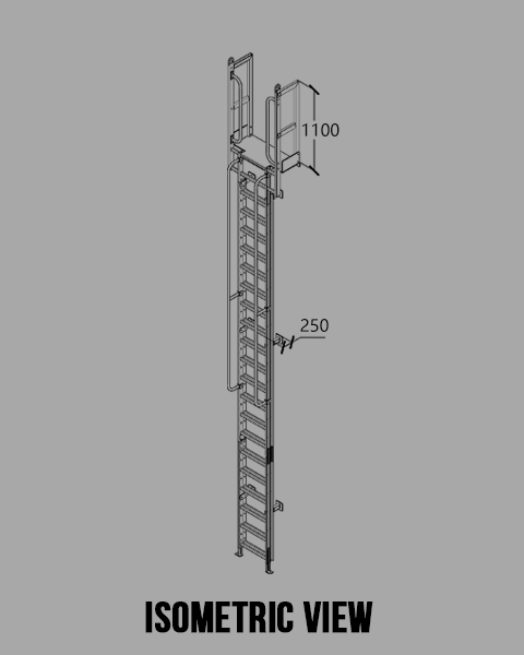 ⑤ The rise of rung is 250mm ⑥ The depth of wall bracket is 250mm