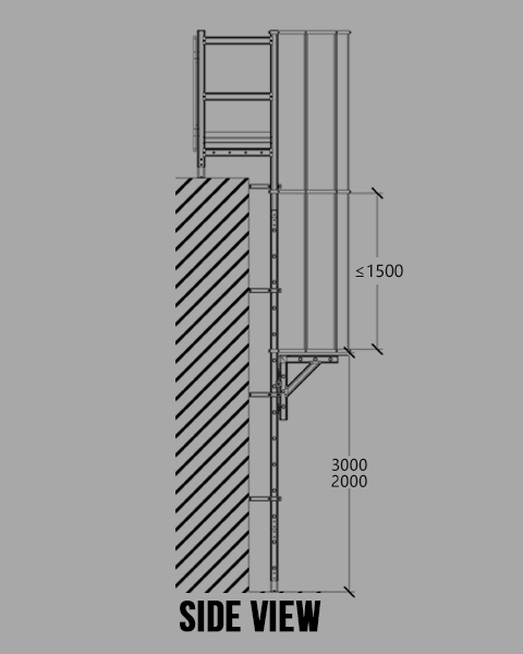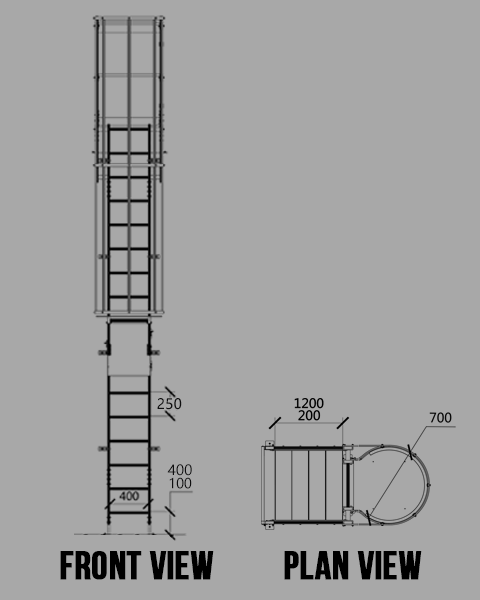 ① The landing platform length should be 200-1200mm ② The rung width is 400mm