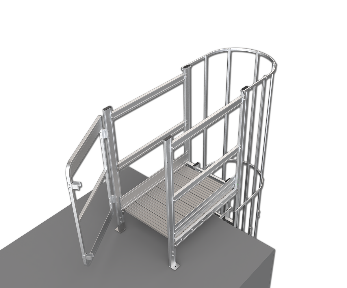 When a fixed ladder extends more than 20 feet, you are required to have a cage to meet safety requiements. It works perfectly with personal fall arrest system.